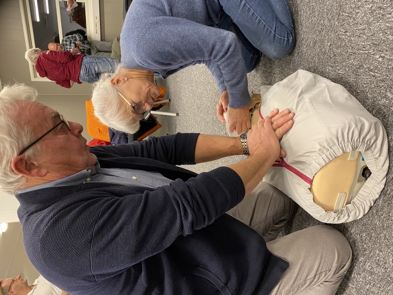 Vi ble også drillet på bruk av hjertestarter og hvordan vi best kunne samarbeide med hverandre. Etter 3 timer var vi både mer kunnskapsrike og godt fornøyd med egeninnsatsen. Takk til Stein fra Røde Kors for et kjempefint gjennomført kurs.
